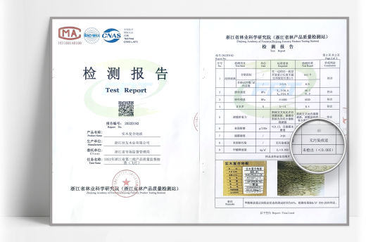 如果說定期委托送檢是對每個企業(yè)的小檢測,那么接受市場的隨機抽檢才是真正的綠色“大考”。國家林業(yè)和草原局的林產(chǎn)品質(zhì)量檢測檢驗報告是由中國林業(yè)科學(xué)研究院木材工業(yè)研究所、國家人造板與木竹制品質(zhì)量檢驗檢測中心、中國林業(yè)科學(xué)研究院人造板及木材檢驗實驗室共同檢測發(fā)布的。2022年7月,國家林業(yè)和草原局針對浙江世友木業(yè)有限公司的實木復(fù)合地板與強化地板進行了隨機抽檢,檢測項目包括含水率、表面耐磨、甲醛釋放量等,每個檢測項目結(jié)果均為“合格”。